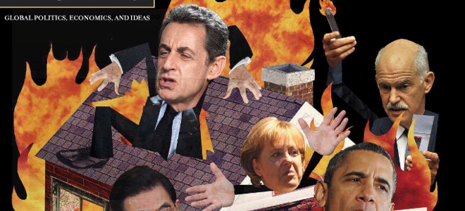 Με ένα προκλητικό (;) εξώφυλλο κυκλοφορεί το διμηνιαίο περιοδικό Foreign Policy, αφού δείχνει τον πρώην πρωθυπουργό Γιώργο Παπανδρέου να βάζει φωτιά σε ένα σπίτι, από το οποίο βγαίνουν έντρομοι οι ηγέτες των μεγαλύτερων οικονομιών της Ευρώπης.